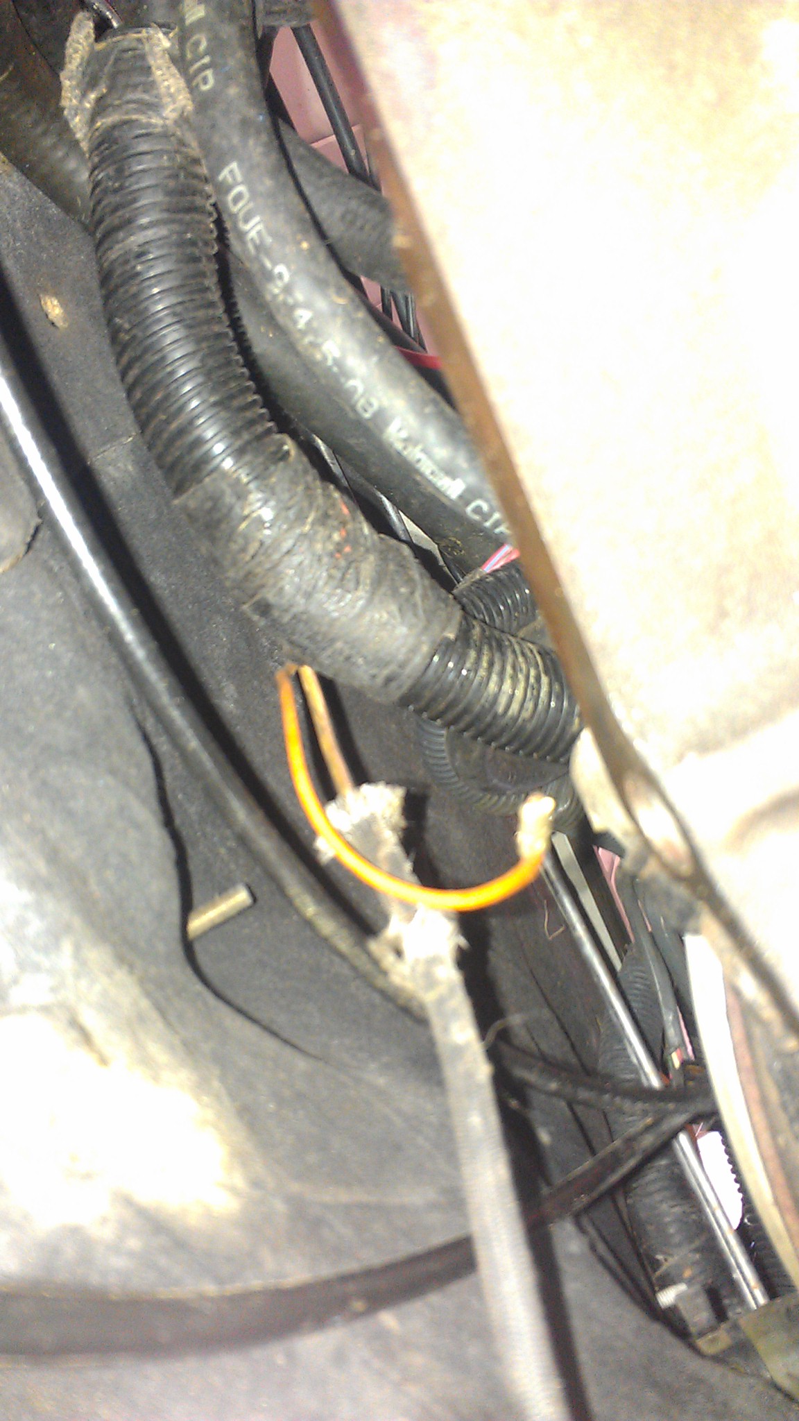 hope someone can help... I removed the auto trans today to do a manual coversion in my XR8.... When I noticed a loss single wire hanging with and comes out of the engine bay loom with the starter motor wire.... It is Orange with fabric heat sheild on it.... I did manage to find a broken terminal on the very back of the intake manafold... Please help... Thanks Barnzey