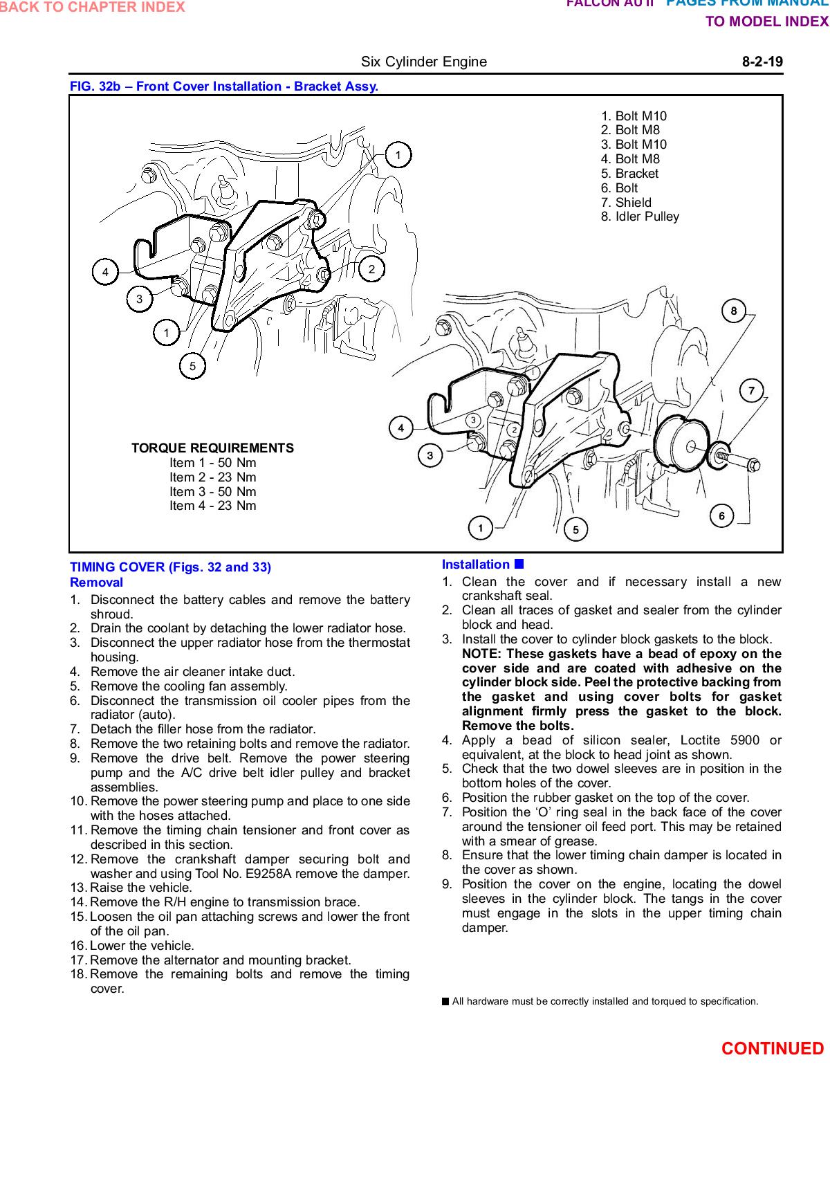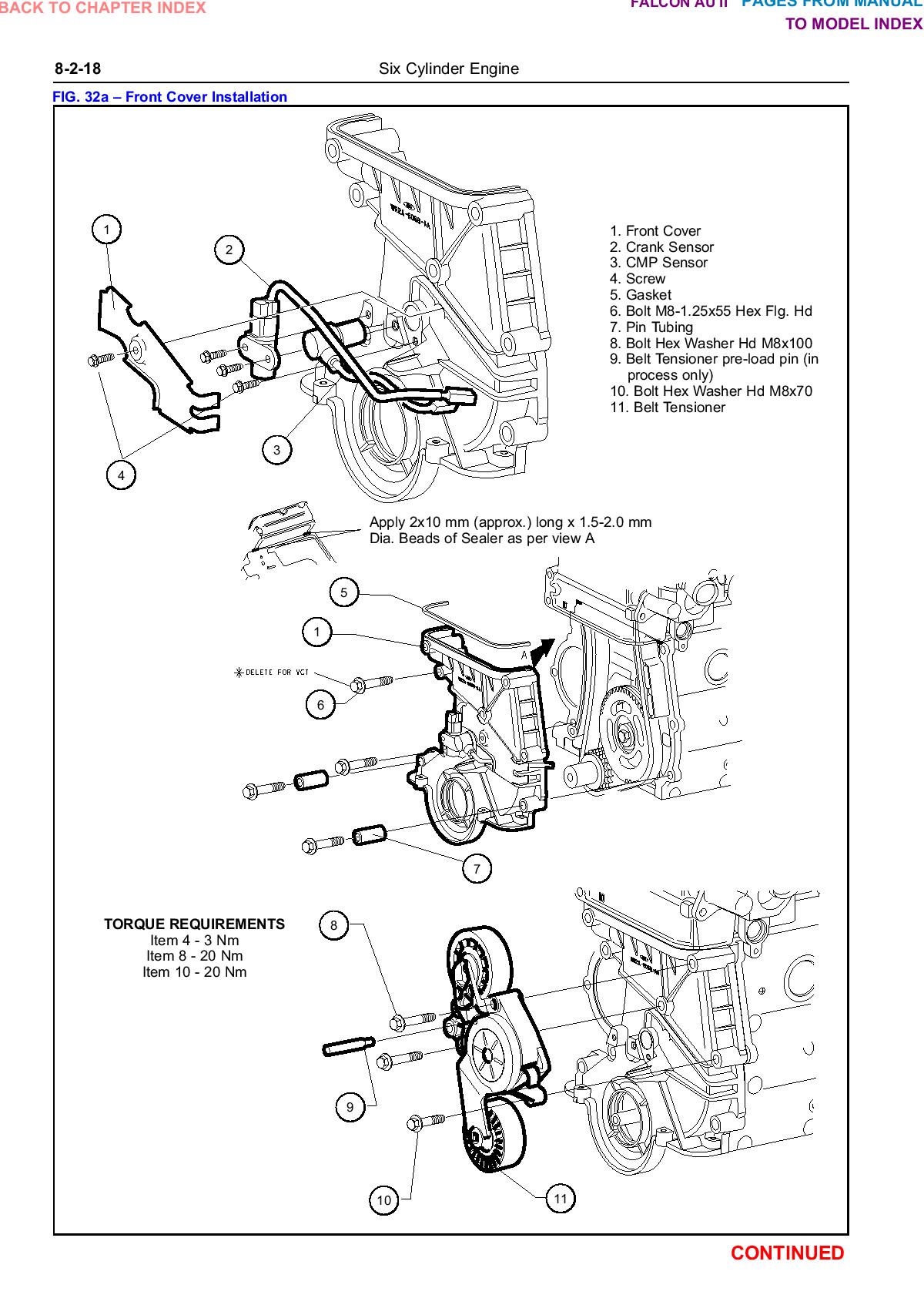 {USERNAME} wrote: To clarify what cjh is saying... Attachment: falcon-au-2.pdf-page-001.jpg These go through into oil too I think cjh? Need thread sealer to prevent and oil leak running down the timing case? Cheers, Tim Yeah.....I use Loctite 567 pipe thread sealant for the bolt threads.