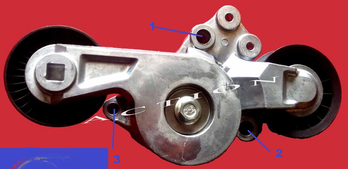 {USERNAME} wrote: Hi guy,just found this forum and realised that there are some pretty clued up people on here. I've started changing my upper idler pulley on my AU fairlane ghia 6 because it was quite noisy. Have undone the two screws that surround it but am pretty much f**k from there.... Is anyone able to tell me how to get it off from here Which Idler pully are you trying to remove? If your car is VCT there is also one on the drivers side of the VCT Unit. As you have removed 2 bolts, I am assuming that you are trying to remove the tensioner assembly (the 2 pully set up). As CJH has said, there are 3 bolts. See below Attachment: