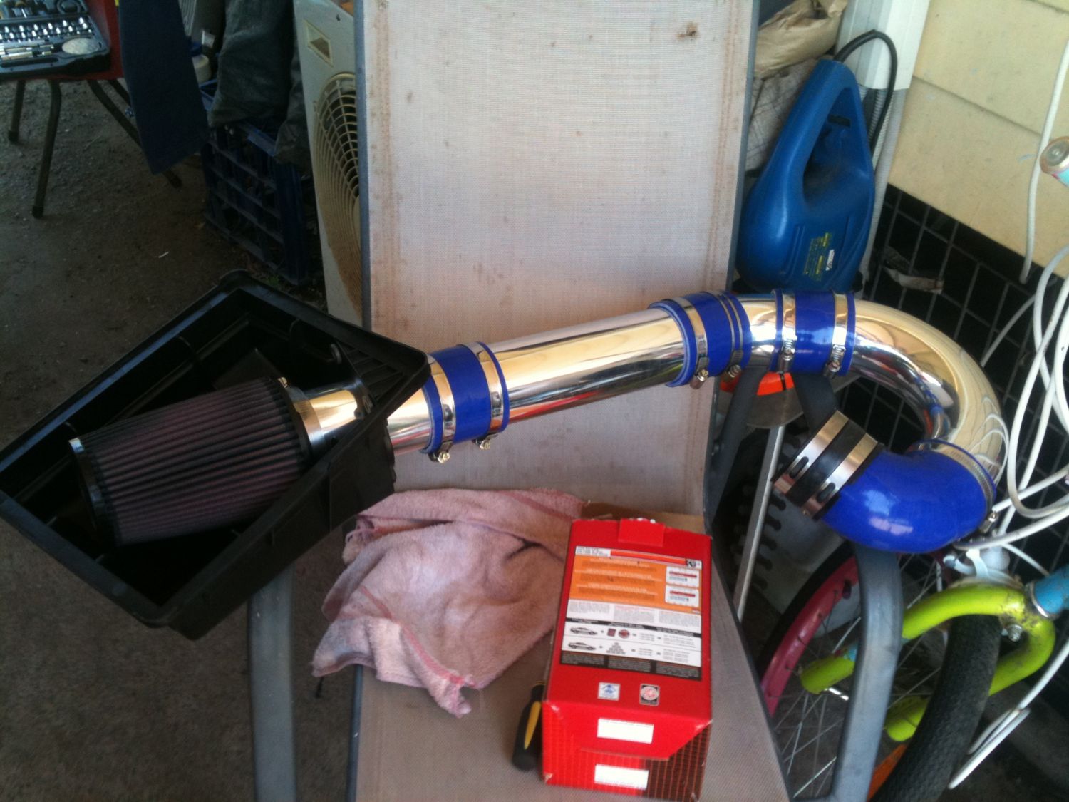 {USERNAME} wrote: Probably time I added my own picture to this epic thread: ![]() That's a similar set up to mine...however you have better silicone hose connected to the TB. Where did you get yours from or did it come with the piping? {USERNAME} wrote: Looking at all these intake pics makes me wonder - why didn't Ford design the throttle body so it points toward the airbox, instead of away from it? I think it's because the way the air flows through the BBM. If you had the TB facing the other way, the air would flow through the TB and straight into short runners with the butterflies closed, causing random turbulence which in turns means crap air flow into the chambers and crap response/power. You could then argue why not change the BBM design so that the butterflies are on the other runners meaning air would go straight into the chamber. However I think that won't give you the low down torque the BBM was designed for at low RPM. That's what I think but I could be way wrong considering I ain't no fluid dynamics genius.