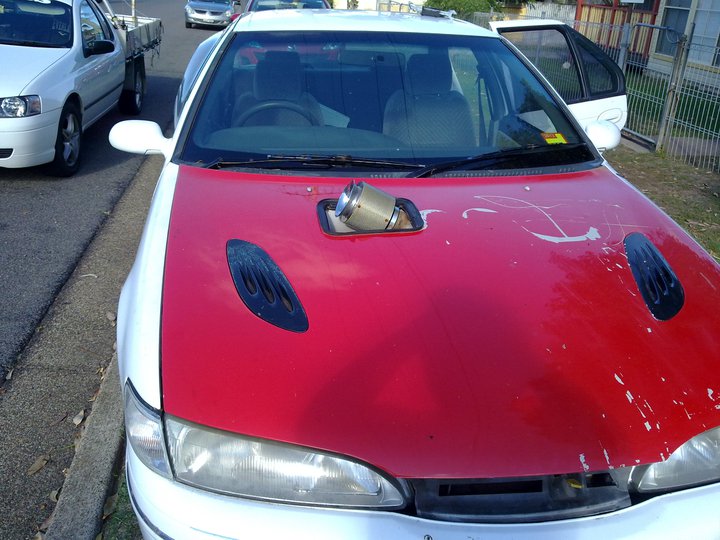 Its an ef fairmont bumper with an ef xr6 bonnet on it. I need to make myself a new grille or find some way of bolting my ef fairmont grille to the bonnet. need to pull the bonnet back off at some point and sand it and respray it. I also have a set of pacemaker 4499's with redback hi-flo with 2.5" supercat exhaust with twin tip. just saving up for a j3 chip and an ef xr6 engine, was going to go a au vct engine but cbf cutting sump or k frame. |