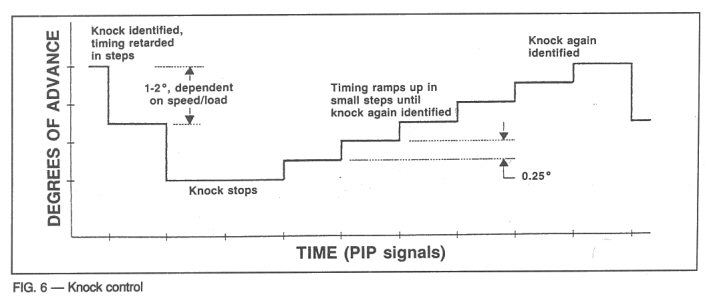 ..yeah, the ECU does not advance the timing up until it knocks.. thats silly. But it does retard it instantly retards the SPOUT signal on a knock signal until the knock is gone.