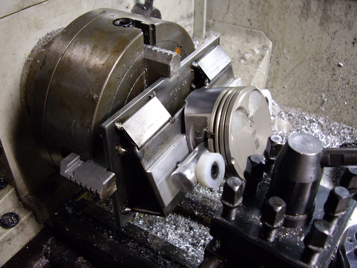 I have machined valve reliefs into the crowns of the ( BA LPG ) pistons. The only thing left to do now is to machine a chamfer on the edges of the cuts.
