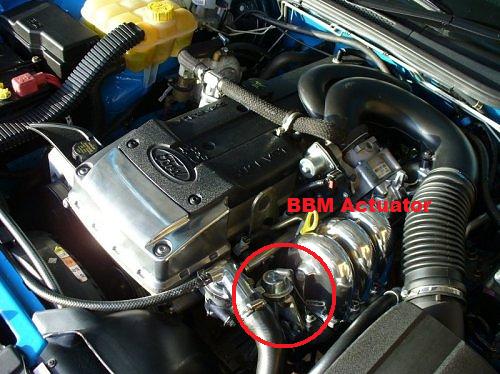 My car stuttered and hesitated when I bought the car from the auctions. Turned out to be the fuel filter being blocked. Might want to give that a shot if you know it hasn't been changed before. If you have run the car with close to an empty fuel tank many times, then the pump may have picked up some crud and fed it into the fuel filter...no harm in getting it changed But since it has been happening after you replaced the plugs, could be the lead boots as EL__Fairmont suggested. Are the plugs in tight enough? (not too tight though). BBM Actuator is a small cylinder that sits at the front of the BBM (BBM = Broad Band Manifold if you didn't know). It controls a butterfly in the BBM which opens or closes with accordance to the RPM. The vacuum created by the engine at certain RPM is fed through the actuator which pulls on a rod connected to the butterfly, opening and closing it as required. But if it is stuck or the vacuum hose is off, the butterfly won't operate as required to give you the smooth acceleration. Anyways I attached a picture for you of where the actuator is located. Attachment: You can check it by first seeing if the vacuum line is connected on it properly and the rod on the underside of the actuator is still connected to a shaft coming out of the BBM. If that is all checked, you can start the car and get someone to rev the engine (to about 3800RPM me think) while you have your eye on the actuator. The rod should move up and down as it hits the right RPM (not sure what it is on BAs, but in the ELs it's 3800RPM). If it doesn't then either the actuator is stuffed or the vacuum line is disconnected somewhere on the other end. Hope that helps