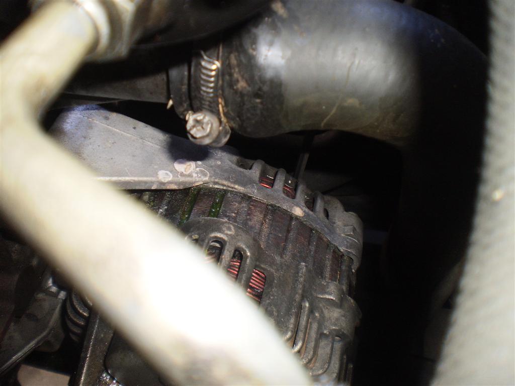 {USERNAME} wrote: {USERNAME} wrote: Hello again, I decided to take a photo and post a pic of the problem, sorry if I could not make it clearer as it becomes distorted if i got too close. You can see the green coolant pooling on top of the alternator. I also noticed some corrosion marks / stains that is evident on a small section on the outer part of the alternator...could be as said earlier a faulty hose or pipe leading to waterpump that requires attention. Here is the pic. Cheers, Peter uhh is it just me or does that hose looks like its got a hole in it? yeh I see what you mean, on the front edge in from the clamp...I reckon a new hose is a good idea...