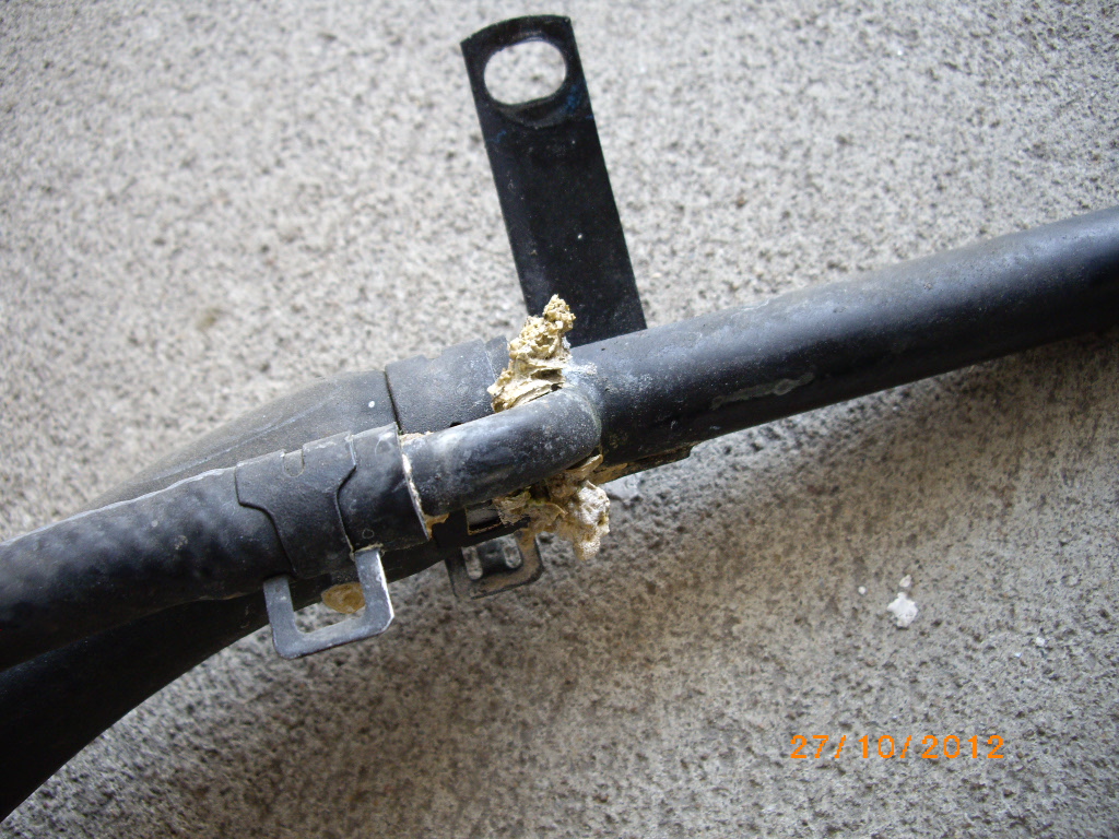 It took me a little while to find it....the by-pass pipe was leaking, so I replaced it....I was lucky that I had a new genuine one, I bought it about 10 or so years ago. While I was at it, I decided to replace the heater tap too....just as well....it wasn't leaking either.