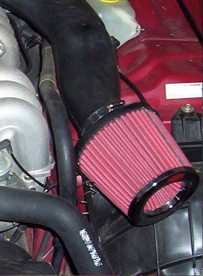 atm you are only sucking in hot air which means you will actually have less performance. put a heat shield or box it with a tickford snorkle so that it is only sucking cold air. i have pics of my setup in my gallery