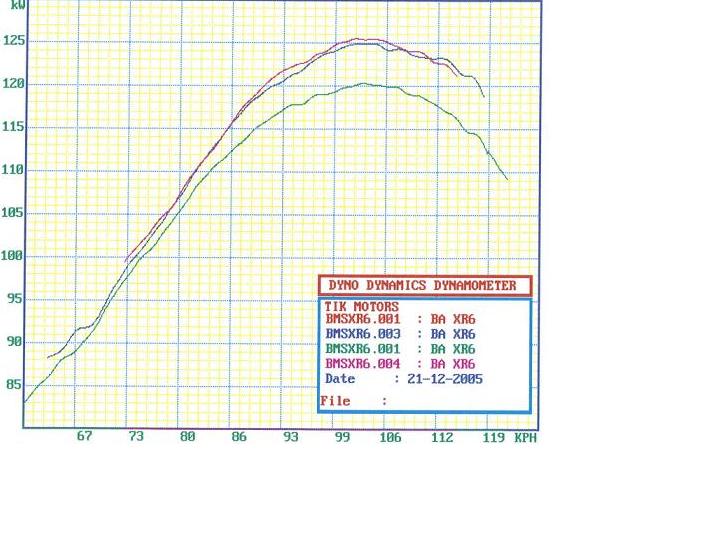 Q2. the BA XR6 are 182kw at the flywheel motor magazine did a dyno run of a BA XR6 and a BA XT, the XR was 146rwkw and the XT was 141rwkw (if my memory serve me correctly) and with only 5000kms on the clock the engine wouldnt have loosened up fully yet...