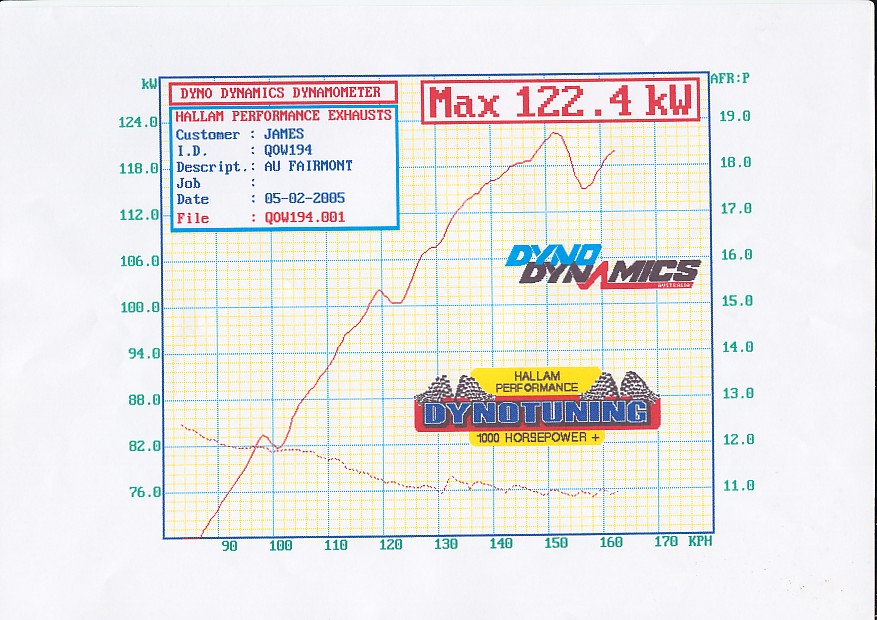 I have seen many i6 fords get these figures with the standard cam and exhaust. These figures are pretty spot on.The last one I saw got 127 rwkws with just exhaust and standard au motor..not mine.