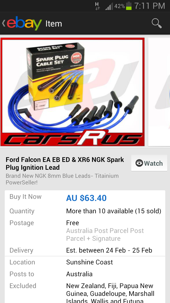 {USERNAME} wrote: hello everyone i was wondering what the best spark plugs would be to put into a ed falcon and what the best leads would be for performance. Thankyou in advance You can choose from NGK's BRE527Y-11 or Denso's J16AR-U11......I choose a Denso over an NGK. Leads.....Bosch do a good kit....Part# B6098i.