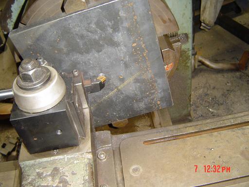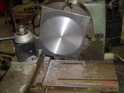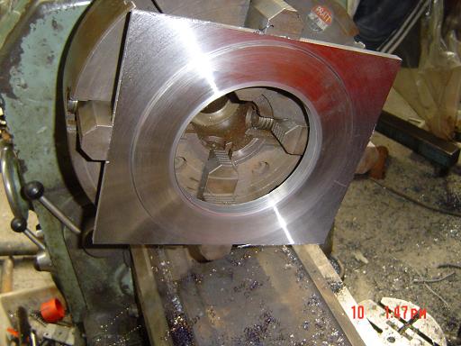 been slightly bissy wif a few big jobs at work and just a few hours to sneak some more work on my own car worked on the transmsion adapter plate to mount a C10 trans to a AU inline 6 cylinder fuel injected twin turbo 3D wolf V4plus thats been fitted to a EA sedan have several ways i could do this and chose the worst way of doing it heaps of machine work and its like watching grass grow when doing lathe work boreing as bat s**t LOL i used a 20mm thick steel plate approx measurements 330mm by 380mm first thing i did was squared the surfaces to be parrallel to each other and started maching it in the jaws of a lathe in a 4 jaw chuck gess there a prick to work with and time consuming to change over the chucks on the lathe and the set the job up in the right place to machine as u can see in the pics had to machine a large 6.125 inch hole in the center so the ford C10 pump could pass through and locate the adapter plate in center an then i had to do a step ( DOWEL ) of 0.184 mm by a diameter of 9.430 inches to locate the ford EA three speed auto bellhousing as seen in the pics Once i finished maching in the lathe then i procceed to drill the pump holes nad the bellhousing holes the ford C10 has irregular hole pattern so will have to mill the adapter ( PROFILE TO SUIT ) plate to match that will be the final machining process. even though the pump is bolted to the transmission and the adapter plate will still bolt via the transmsion outer bolts also probably not needed but hey a little more drilling wont kill me LOL the next plates i will have them frofile waterjet cut and the i will maching a few things in them save alot of time on the late and mill