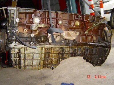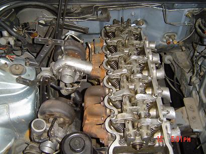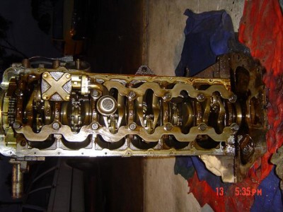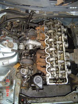 I know im not doing anything new as far as turboing a EA falcon but its my little project car that is keeping me busy Just recieved my AU-2 short motor today and taken some pictures of the bottom end will post them . Interesting how ford reinforced the bottom end. Will post more pictures as i need a special harmonic balancer pully cause the balancer has no threaded holes to mount a pull so will make one at work tommorrow brb downlaod and minamizing pics cya UPDATE 12/10/2005 just using afew things i have laying around the place to finish the project and experiemneting with the EA down the quarter mile track early stages yet trying to position the two turbos in the engine bay so there is enough clearnace every where , using case steel exhaust manifolds which are modified units and will be able to position back the heat shield that ford fitted originally, next few days i will finish the mount of the turbos keep u posted cheers