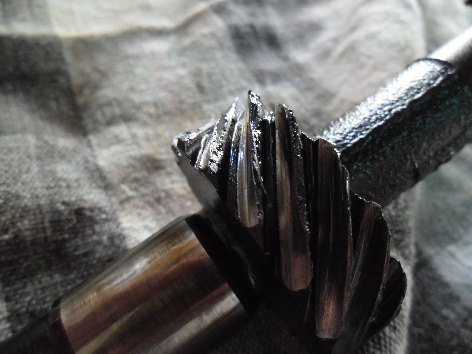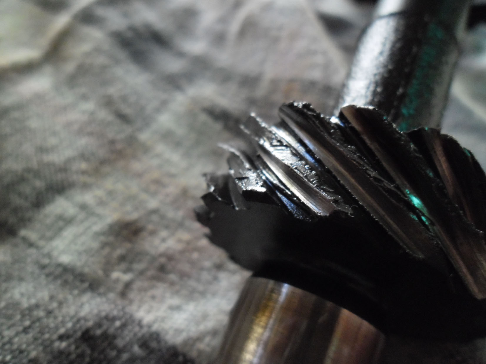 This is one side of the idler shaft gear, pretty darn mangled!