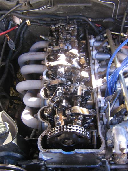 Same way I did, just snap no.3 intake valve, let it slip under ex. valve, and voila - 7 busted rockers