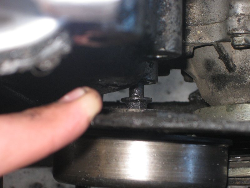 Attachment: Attachment: Attachment: With the idler pulley, I can't seem to easily move that out of the way, it's like it's stuck to the case for good.... there is no bolt attached to it, all I seem to be able to do is move it about and that's it, but I can't quite move it out of the way enough to get that bolt out, and there's the crankshaft pulley as well to be dealt with.