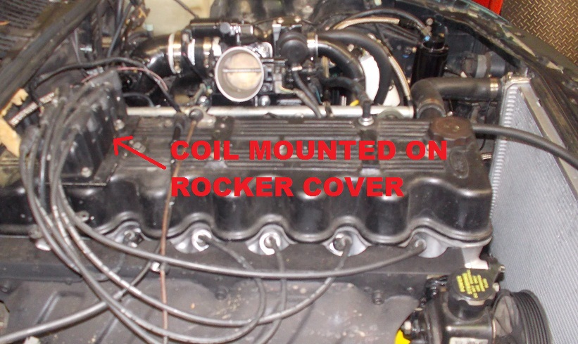 No Pics at this time, my mounts for the coil are welded to the rocker, special set up. I have made a plate for a mate that bolts up useing the 2 rear rocker cover bolts, you use the threaded end bolts from the EF. With the coil mounted to the rear you need to use the EL intake elbow and the EL intake or a custom pipe. You need to extend the coil plug wires.