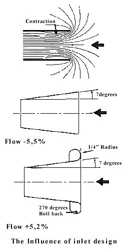 bottom picture in the diagram illustrate the best flow. none of them represent the shape of an EF inlet tho if the bottom pic had the bell mouth on the small end it would be the same as an EF i would say that between the bell mouth shape and the increasing diameter of the tube there would be something like a venturi effect created ... see the top pic above how the airflow has turbulence just inside the inlet? ... well if the diameter is steadily increased as well as a bell mouth added, then there would be a more laminar flow pattern which would allow the air to flow faster in comparison to the other shapes i've also wondered if something like the vanes on a highclone unit were moulded inside the ducting, which would create a swirling rotation of the air as it flows thru that this also would aid and likely increase the flowrate thru the inlet ducting resulting in better airflow also ... am not about to spend $200 on a highclone unit to find out tho |