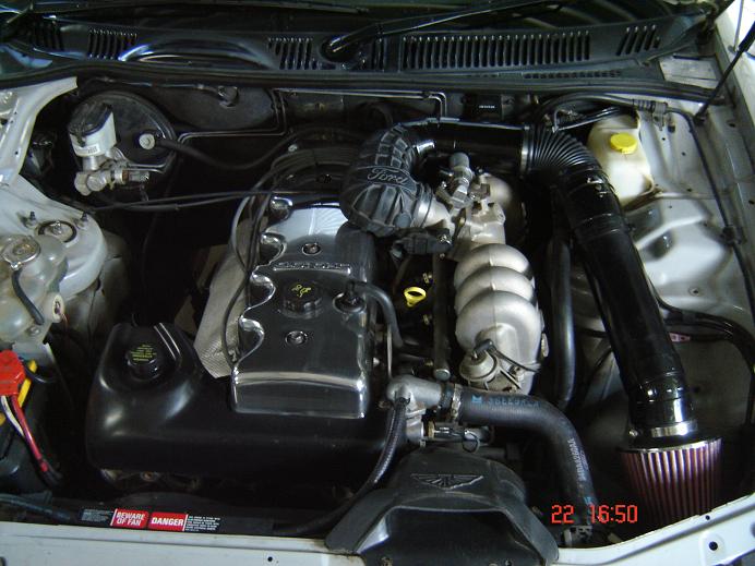 get rid of the airbox all together, and hear the whistle. since this pic was taken, i also changed the piece that goes over the intake manifold to 90mm pvc as the original Ford unit has a big restriction in it to clear the manifold.