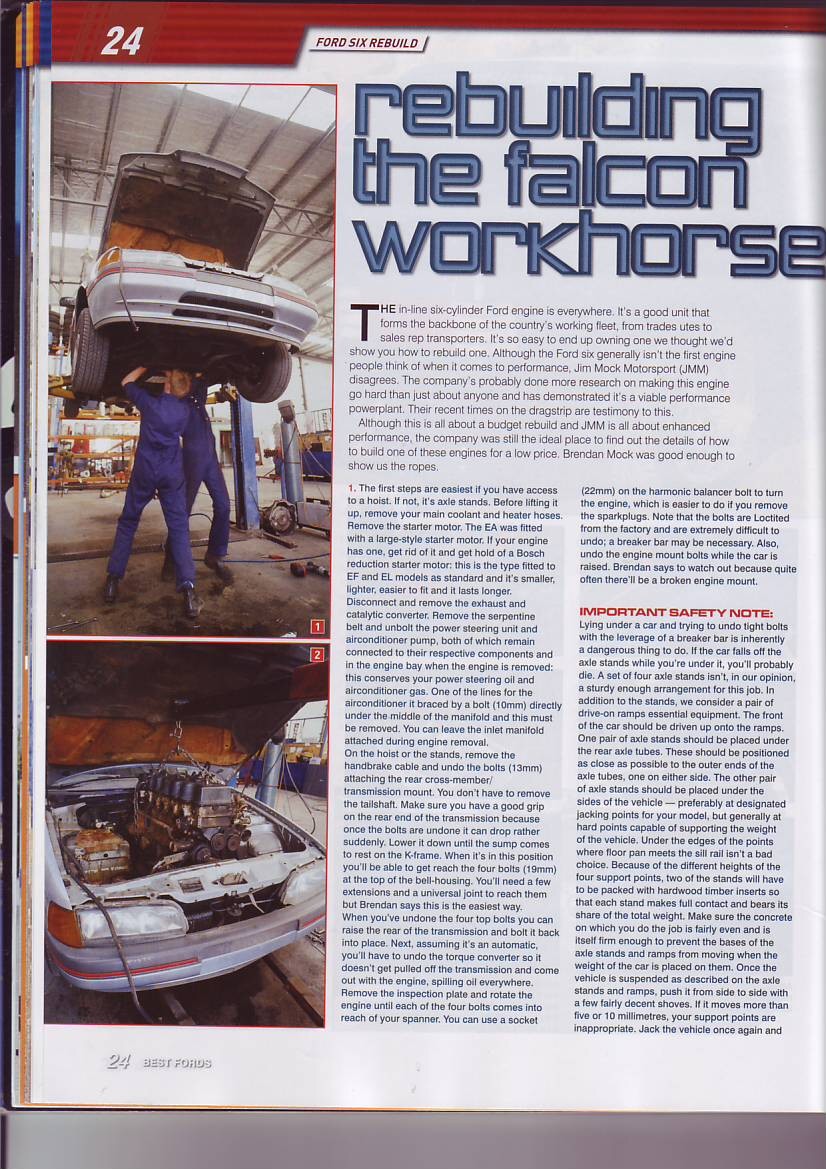 Street Machine mag did a 3-part series on rebuilding the e-series I6 a few years back, but it was a bit vague. You might find it helpful. There arent many books on the I6 ford available, so the gregorys/haines is your best bet.