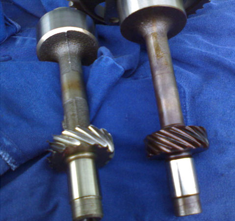 Well I have done a lot of searching and found a lot of helpful hints from this site. So hope this helps others with a similar issue as this one had me stuffed for quite a while. Firstly its a Ford Falcon ED Auto duel fuel wagon and I only use it on my motorcycle camping weekends so I sleep in the roomy back. First time I had an issue was coming home from a Geelong area motorbike event and it was up a reasonable hill and a back fire and then it stalled. We pulled over and tried to crank it over multiple times and it was banging and clunking something shocking. Then it just started again and we drove another 100km home with no issue. This was weird as I know now the Aux shaft teeth are worn and it jumped a tooth ( or so) again six months later and I had to get towed home. On the Geelong trip the banging and spluttering must have made the (Distributor) dizzy jump to the correct tooth!!! So after the Geelong experience I found my dizzy was pretty worn so changed it and thought it would be OK. Pitty I did not pay much attention to the gear condition at this time. ( note I did use the original gear on the new dizzy) But no 6 month later the penny dropped when it did it again and I found the timing mark moved about 40 deg BTDC and I found some photos of dodgy shafts on this and other sites. So my situation is a bit strange as the car will run fine when I re time it. ( the timing mark jumps around a few deg but the car idles pretty well) Both times it jump out on the road was climbing a decent hill. First time it backfired on gas second time it just died with out a backfire. ( I have wasted a lot of time looking into failed sensors, Oxygen, ICV , MAP and TPS and Clogged Exhaust etc etc. ) So if this happens you need check the timing using a timing light. You will need someone to crank the car while you adjust the timing by rotate the distributor. You can re time the car even if it wont start. If you cannot see the timing mark the dizzy has jumped too many teeth. Then its time to remove the dizzy. To remove the Dizzy, Remove the air box, Remove the thermo fan (retro fitted in ED) Remove the throttle body, Unclip the dizzy cap and carefully put it behind the dizzy, loosen dizzy clamp bolt ( you should now be able to put you hand behind the dizzy and flip the clamp out of the way) Now lift the dizzy out. Now you have the dizzy out you can look down into the hole and examine the gears. You can see pretty easily whether they are good or bad. Mine were pointy and worn with no flat. If yours Look like the good gear ( RHS in photo) you are on the wrong track. So now I need to change the AUXILIARY shaft. I believe my shaft gears has worm over the years and the engine still does not burn oil so I don't have a lot to loose buy putting in a new shaft. A lot of talk about metal bits in the sump on previous post but I will take the chance and just replace the gear. I am hoping this can be done without removing the motor or the head. I heard you just have to remove the radiator and drop the sump. I hope to get a good shaft from the wreckers. What models have the same shaft as and ED?? Any one who has done this before in the car?? Would appreciate your comments. Thanks for your help in previous posts.