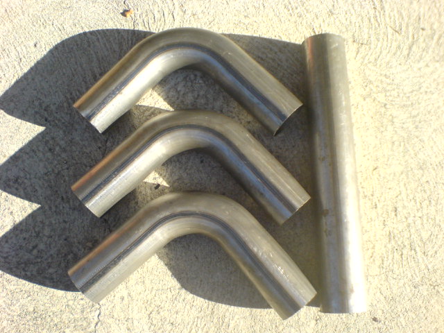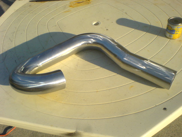 went and got 3 3" 90 degree bends. and a off cut of a straight lenght. cut them and played around with it all to get it to fit under the bonnet. used tape to hold the joins to get the angles right then when i was happy i tac them together. went to a mate who has a mig welder as i only had an arc. and welded it up then spent the arvo grinding the welds down then useing a sander pad on a grinder went over the whole thing. got to do a few little tuch up welds on some pin holes but other then that its come up pretty sweet. plan on sanding it bac smooth and getting it chromed. heres some pics enjoy
