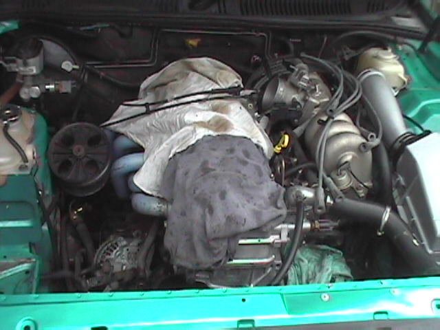 well i have bought the new guide, veranda seal, and gaskets and i am half way there to getting to this damn guide :x . this involved draining coolant, removing radiator, belt, tensioner, power steering pump, alternator, water pump, harmonic balancer and now draining the oil and unbolting the sump!!! :shock: theres a pic of the mess my engine bay is in atm.