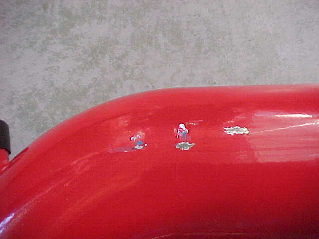These are scratches caused by the hole I had to cut in the bonnet AFTER I had covered the intake with vaseline to see where it rubbed. The third scratch on the far right is the latest to appear. Its like the intake is shifting!