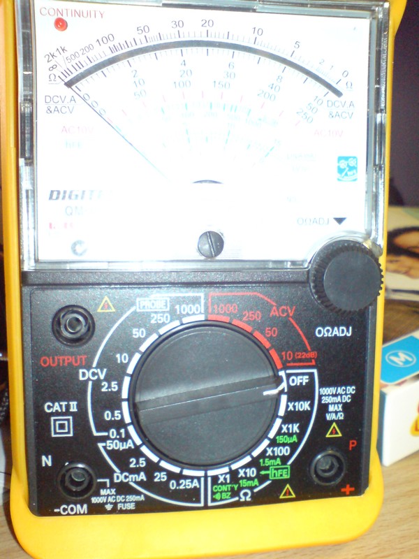 One good feature with analogue meters is testing speakers and location when installing. On ohms X1 strike the probes onto speaker cables and the speaker will produce a small ticking sound making it alot easier locating front left/right/rear left/right speakers and so on. Digital meters wont do this.