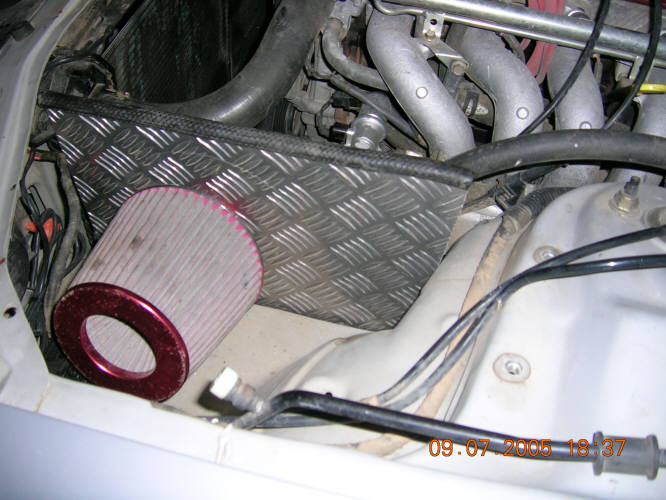 yeh really had to force it but got it on... looks kinda odd tho as it doesnt quite sit right yet, i gotta make the 90* bend a bit shorter on the TB side as the pod sits too close to the headlight but once its sitting in between light and wheel arch its gonna look a treat cos ive got a chrome heat shield for it too