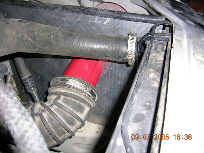 as i said i needa chop a bit of pipe off at the TB side of the 90* bend to get the pod sitting further back in the engine bay away from the headlight