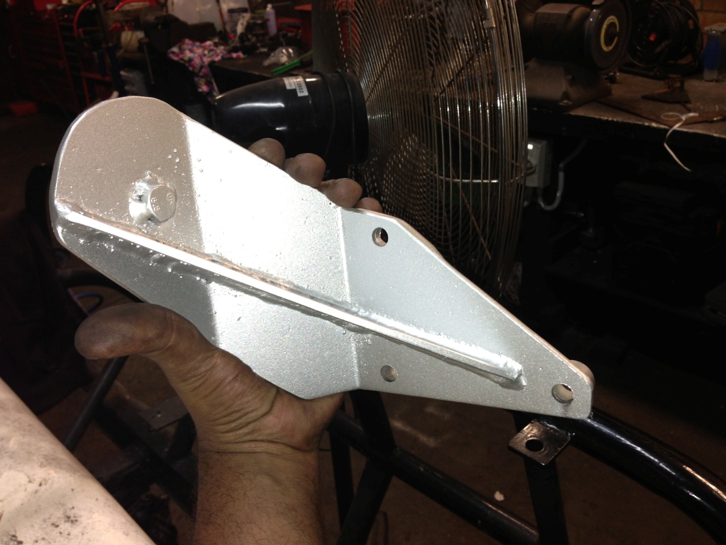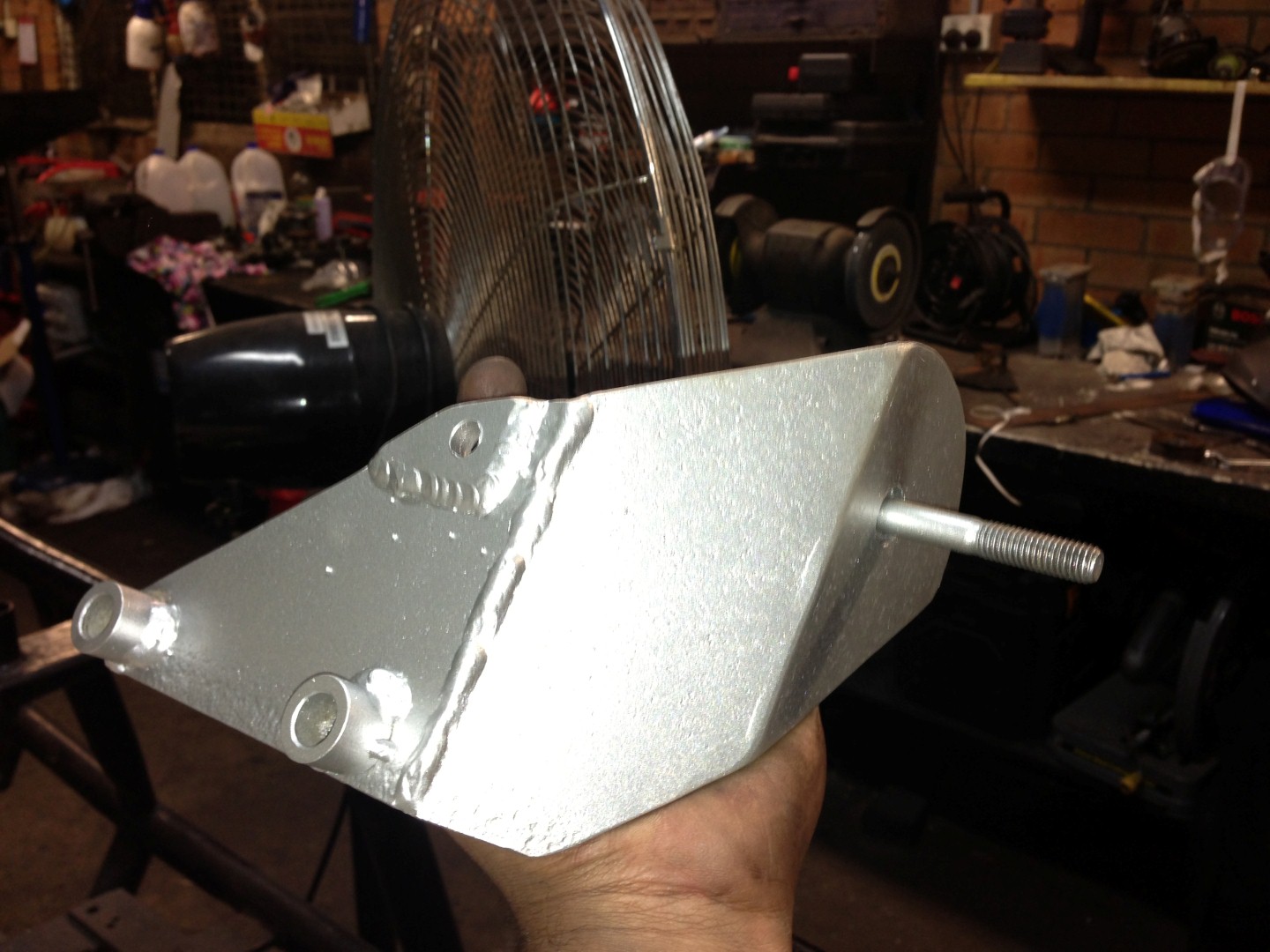 It's all 4mm plate. Should be plenty strong with the brace. The lower mount spacers are 15mm and the top mount spacer is just another piece of 4mm welded on. These spacers are needed to clear a casting in the block. I don't have any measurements or a schematic as I just copied the genuine idler using an angle finder. I just spaced the pulley up further to suit my application. Yes that ribbed pulley is the same as the one in the tensioner. I pilfered the boss it sits on out of an old manual tensioner. It's not hard to remove if someone needs measurements.... |
