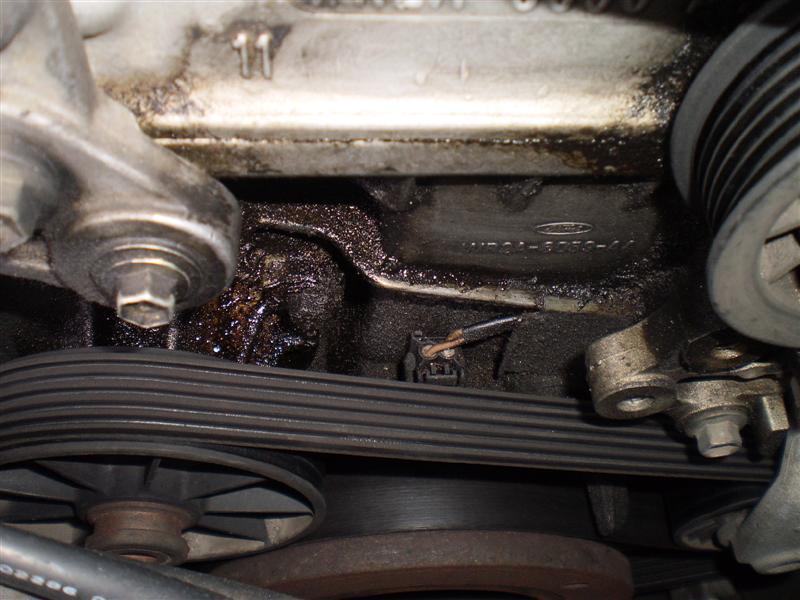 Sikaflex or silastic, and car shop sells it. its basically black silicone for cars, stickier and harder to clean off s**t when you screw up. Only need a small tube, nothing drastic. once you remove your tensioner (3 bolts) and your serpentine belt it should become very clear where I am talking about that weeps, degrease that f**k let it soak, get some firm no steel brushes small ones like tooth brush size and have a scrub around, don't go digging at s**t that looks like its ment to be there, you could damage a seal. We all know seals are for clubbing. If your still having issues, I'll take some happy snaps and show you.