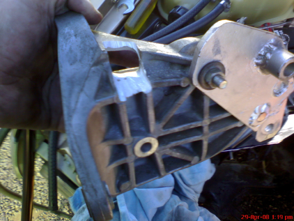 Boy, you really had to take a fair bit out of the Alt bracket. You should enjoy the benefits of the bigger alt too with the fans and all. I look forward to seeing it soon. Cheers BenJ yea i hope the alt bracket holds up ok? im fairly confident it wont crack. i could have cut right through the bracket but i thought ill just remove what needed to be removed so it will keep some of the strength.. ben does your engine have the steel bar that runs from the front of the alternator to the timing case?? as the bolt that goes through the timing case is the one thats leaking oil at the moment.. i was thinking of leaving the steel bracket out as the bolt that is in there is to short to use with the steel bracket! |
