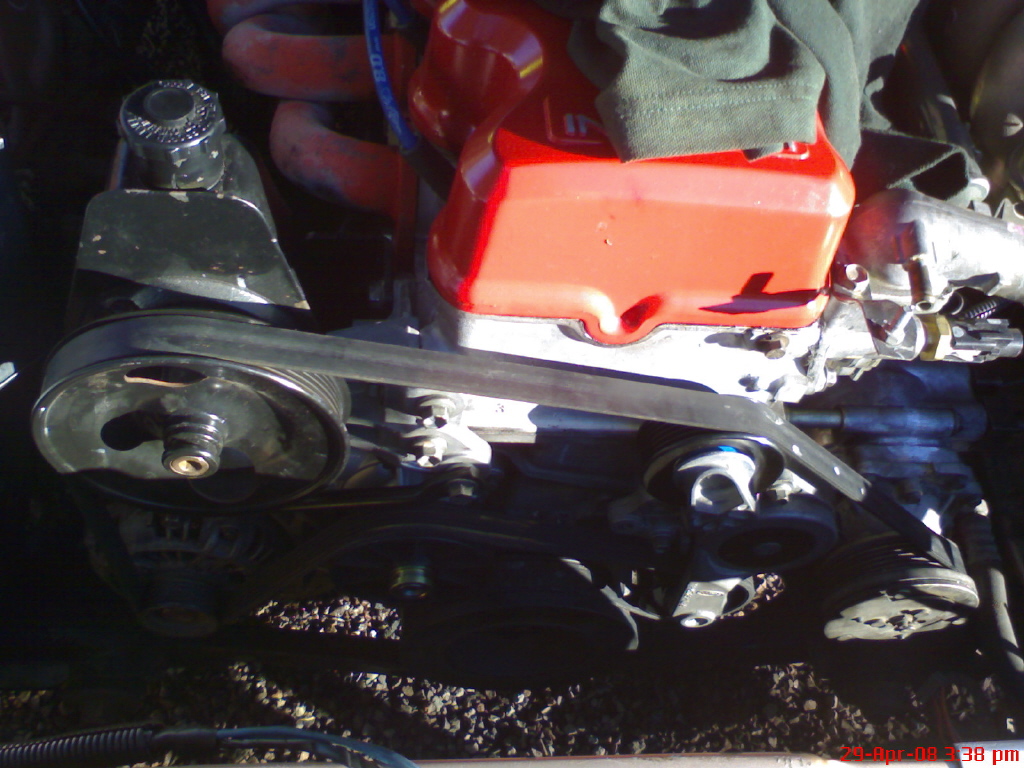 but i have an issue with oil leaking from the lower front bolt on the power steering bracket.. its the bolt that runs through the top of the timing case. ive packed the hole with silicone and i took it for a drive with no front end on it lol.. but its still leaking? so ive removed the same bolt again cleaned as much of the oil out as i could and re packed the hole with and covered the bolt with silicone.. ill let it sit over night and see what happens?? on the up side ive noticed that the engine is quieter,its more responsive(less drag on the pullies?)the power steering is easier to steer for some reason? and there is no more voltage loss when the thermo fans come on.. so other than the oil leak im very happy with the result.. i would recomend doing it to the ea/ed its a nice mod.. Last edited by TROYMAN on Thu May 01, 2008 10:21 pm, edited 1 time in total. |