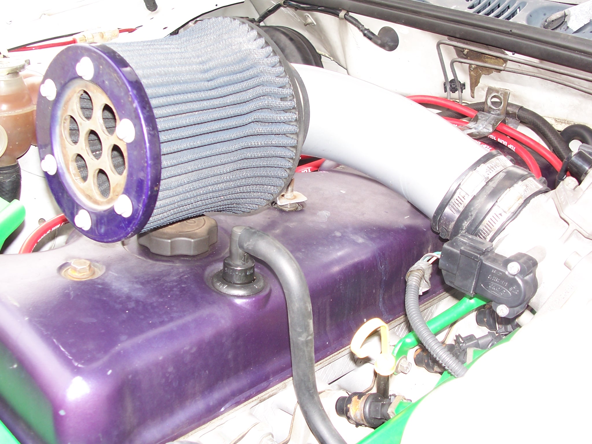 heheh good question...but air flow directly in like that would work well:P lil heat from rocker cover but nice short run for an intake... hehe dunno bout ya colour scheme thown looks clownish to me