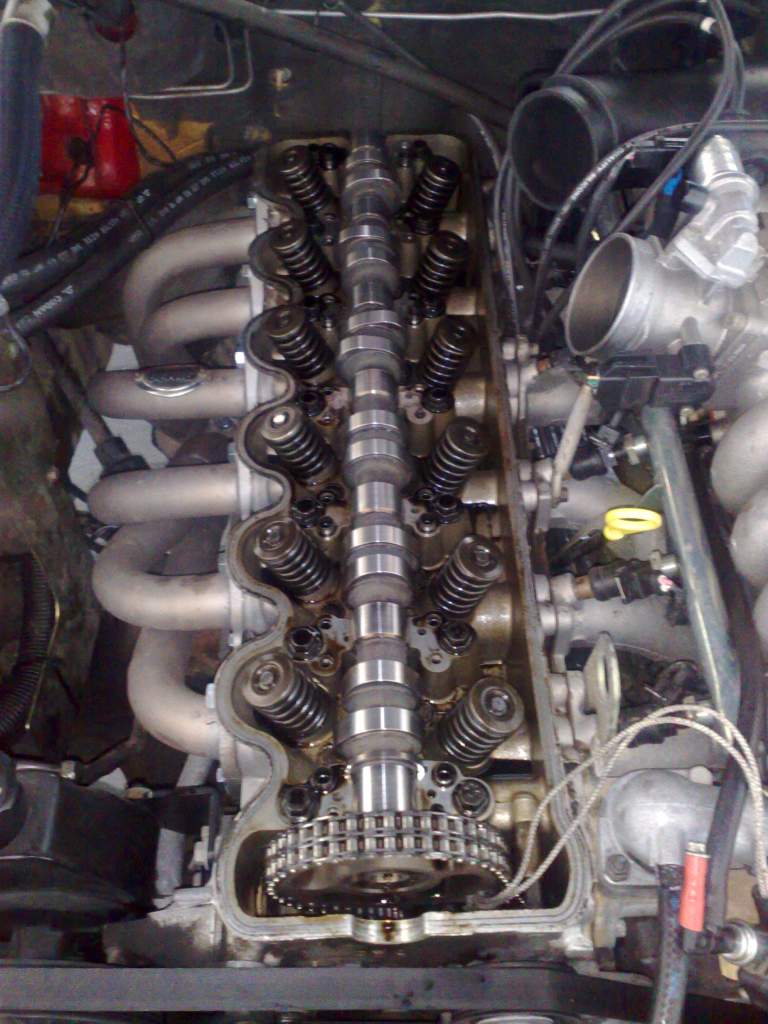 The pic of the timing chain is to show that u dont need to take out the tensioner to get the gear off, just use a wedge to release the tension instead, saves alot of time. Ran like s**t on first start up cos it fouled 2 plugs cos it runs so rich, but after we cleaned them up it ran beautiful. also runs really well on gas, for ppl wondering how they work with gas...