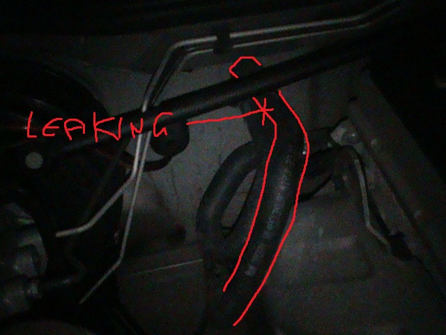Black rubber pipe that runs into the engine just in front of the steering wheel. Its leading a green fluid, which is causing excessive amounts if smoke. I'll get the pipe number shortly