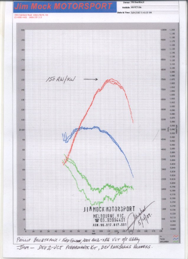 {USERNAME} wrote: {USERNAME} wrote: i got 151rwkw out of my au series 2 xr6 ute. all i have done so far is exhaust and intake jim mock gear and on mockys dyno? post up a dyno sheet... no worries mate, here is a dyno sheet, still need to get flasher tuner done and custom tune to get it running properly