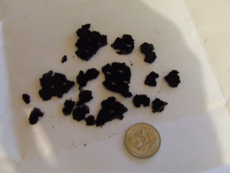 Looks like carbon crust built up from the perforation pipe inside the muffler. the pieces are to big to be blown through the cat converters honeycomb.
