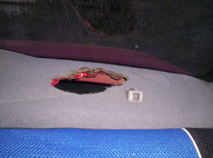 Too bad your car wont get through a roadworthy now.................................. Cutting your parcel shelf is ILLEGAL!!!!!!!
