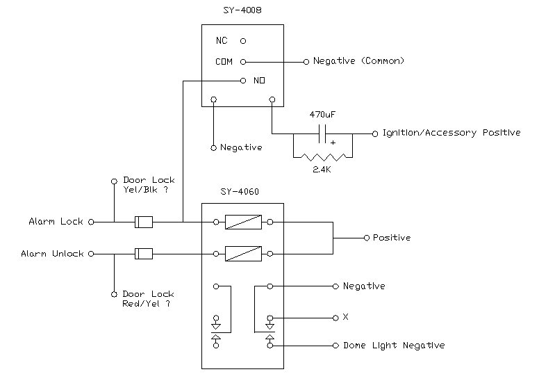 Both the lock and unlock from the alarm goes into the Y-BL. I was just wondering if it was meant to be that way. It works, but makes things complicated for getting the interior lights to work. Is it possible to have the unlock on one wire (say Y-BL), and the lock on another (R-Y)?