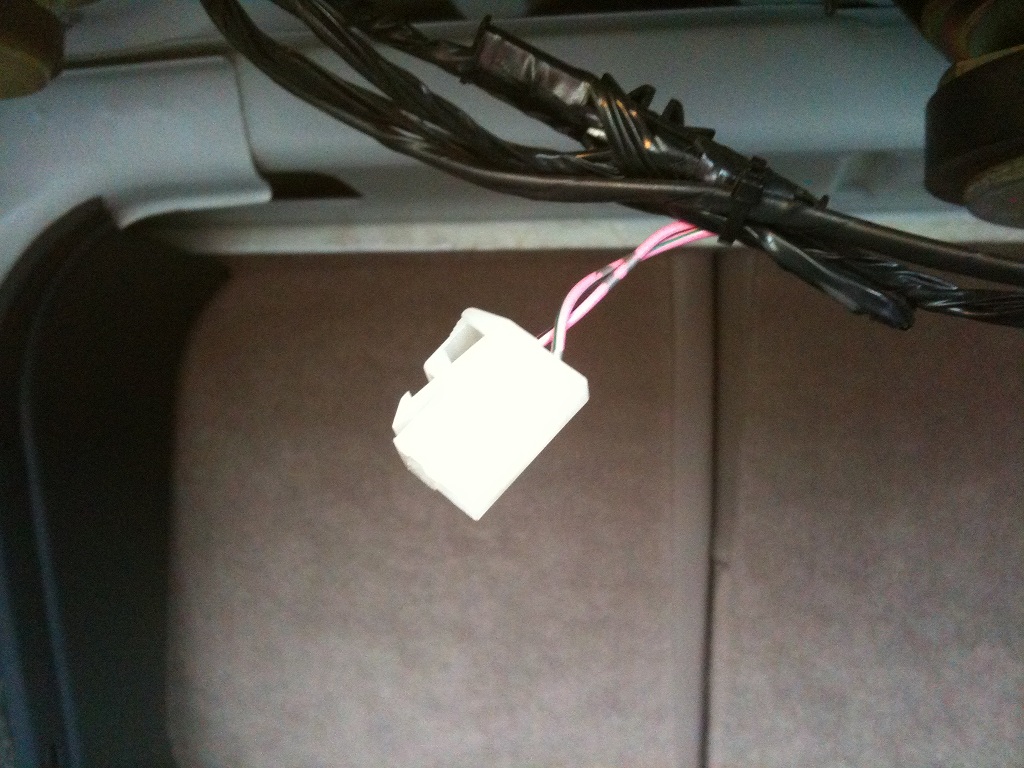 {USERNAME} wrote: No idea about dash plug, but, is the aerial wire the one hanging under parcel shelf that looks a bit like a coaxial cable plug? Had a look... I have no coaxial cable visible anywhere... Mmm I've taken some photos of 3 plugs I'm not sure about... The plug with four coloured wires matches the same as the one under the dash kinda near the foot rest... Attachment: