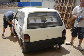 hey guys just a quick up date on the car... the car is now painted didnt turn out the colour we wanted but is still orange lol about the colour of orange hi vis work shirts lol will post pics soon