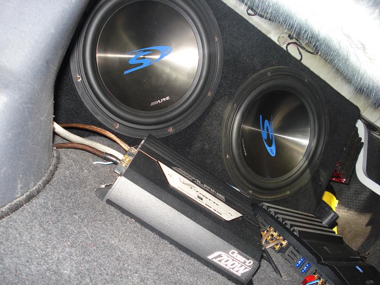 Here's mine. I wanted it to look reasonably factory and I wanted to keep most of my boot space. The amp, sub and wiring cost me $140 and the rest I made from stuff I had at home. It is a Response 10" 350 watt RMS Sub, US Audio 350 watt RMS Amp, Rampage 8 AWG wiring kit and some extra speaker cable to wire up the front speakers to the amp.