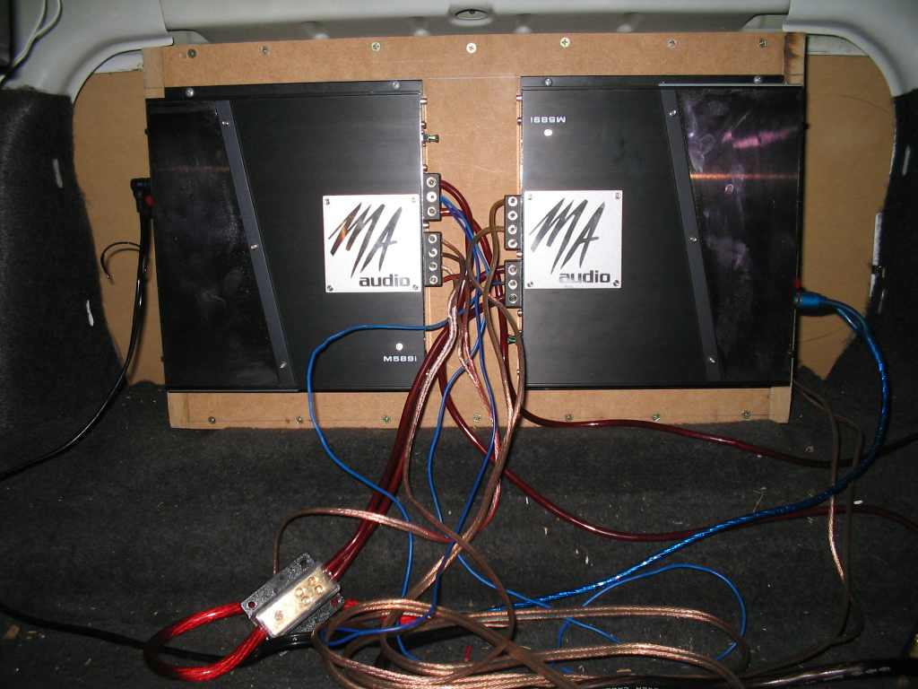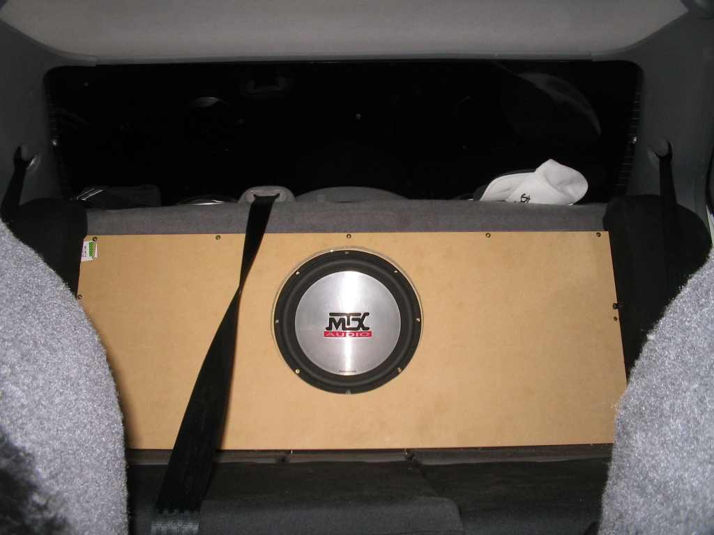Hey man, that's awesome. I'm looking at doing a similar install, but I want my subs firing forwards. How is your board behind the seats mounted? If I mount the same board, I'll cut an opening for my subbox to be pressed up against it. My amps will be on the back (in the boot) and because I managed to pick up a 5th 17" stalker fairly cheap, I want to show off my spare. The plan was to stick some ply or thin mdf under the carpet, cut out a circle and replace with perspex. The whole cover will be hinged and hopefully I could put a blue neon under the spare wheel.