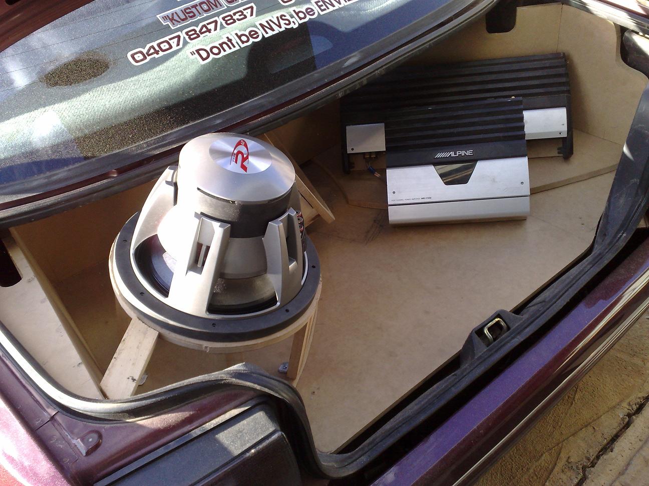 Source: Pioneer P4050UB http://www.pioneer.com.au/en/Products/A ... 050UB.aspx Equalizer/Crossover: Behringer DCX2496 http://www.behringer.de/EN/Products/DCX2496.aspx Front Stage: Focal Polyglass 165 V1 http://www.focalaustralia.com.au/polyglass.html Front Stage Amp: Audio System F2-500 http://english.gttrading.it/easysite/sc ... 3E500&pg=1 Subs: 2 x Image Dynamics IDQV3 4+4ohm http://www.imagedynamicsusa.com/product ... duct_Id=18 Sub Amp: Audio System F2-500 http://english.gttrading.it/easysite/sc ... 3E500&pg=1 Battery: Bosh Gold 2nd Battery: Optima Yellow Top D34 http://www.optimabatteries.com.au/Produ ... owTop.aspx Sound Deadening: Dynamat Extreme, Sika Boom, Flashtac i started with the Dynamat and put one bulk pack in the front doors one in the boot and another in the rear doors and around the car, the parcel shelf has had Flashtac applied to stop some rattles also. The subs were loaded off the boot but it was flexing the sides and the spare tyre well too much and outside it sounded crap, so i turned the box around and fire into the cabin. I found that if subs pointed at the seat the bass was less boomy and didn't rattle the bumper anymore. The audio system amps are rated at 1250 WRMS but because i run my subs at 4ohm the only see 800wrms. The crossover frequency is 100hz on a 48db/oct. Front splits see 250WRMS per side and this drives them well beyond there limits without clipping. The 2nd optima battery is charged off the alternator with a 180 amp charge regulator and 2 x 4ga from the alternator. All the wiring in the engine bay has been beefed up and a 6 point 4ga ground kit has been hooked up. block grounds are 0ga and the wiring coming from the optima to the power and ground distros are 0ga with a 0ga earth to the chassis. wiring to the subs is 8ga and the wiring between the boot mounted crossovers and the front mids and tweeters is 12ga. all up i have used 30+ meters of 12ga, 4m of 8ga, 15m of 4ga and 5m of 0ga (thats a bit of copper). distro blocks and fuse holders are stinger and stinger pro. Subs are in a double skinned and reinforced box made out of 18mm MDF, the box is sealed and the size is about 70L. false floor is made out of 18mm MDF and the sides are 16mm. Front doors needed a bit of a trip to fit the 6.5" mids and the tweeters are mounted on the sail panels Trigger. ![]() ![]()