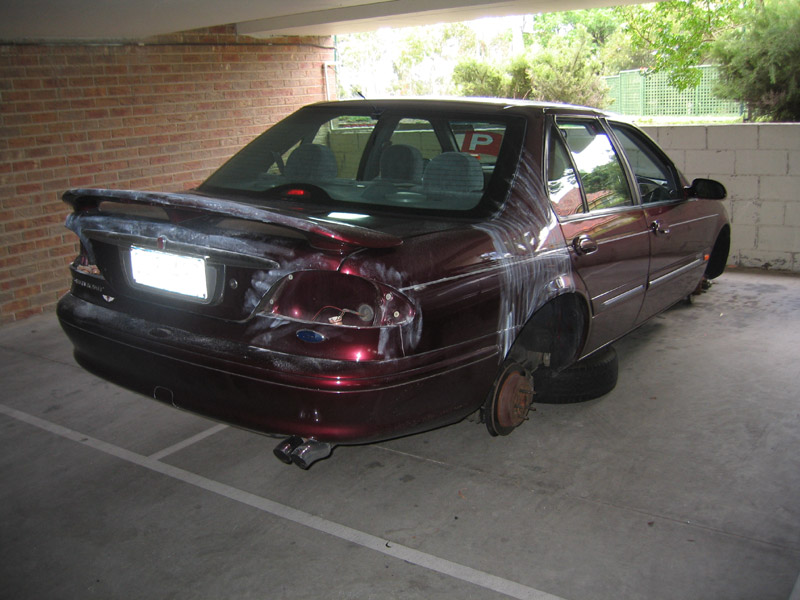 A bloke from the E-series forum (FairmontEL) recently had his EL falcon sedan stolen. Here is a pic of the car which was located a few days later, it was found to have a busted door lock and forced ignition barrel.
