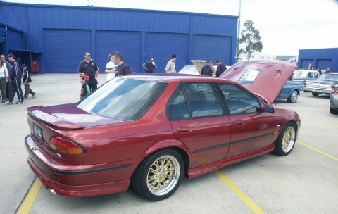 Heres a pic of a hot EL XR8 with a shaker fitted... yeah that's where I got my inspiration for the shaker, that one feeds into a carby type throttle body though, mine will go down into the airbox, so needs a bit more fabrication, I'm waiting on photos from someone here for that, to get an idea of the airbox, I don't plan on mine sitting that high though, the bottom of the mouth will be level with the bonnet. starting to shy away from the venom front though, looks to much, might go for some a bit more subtle, still keen on the wide stripes ala the XC, with something like the BAGT stripes around the side.
