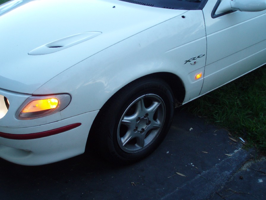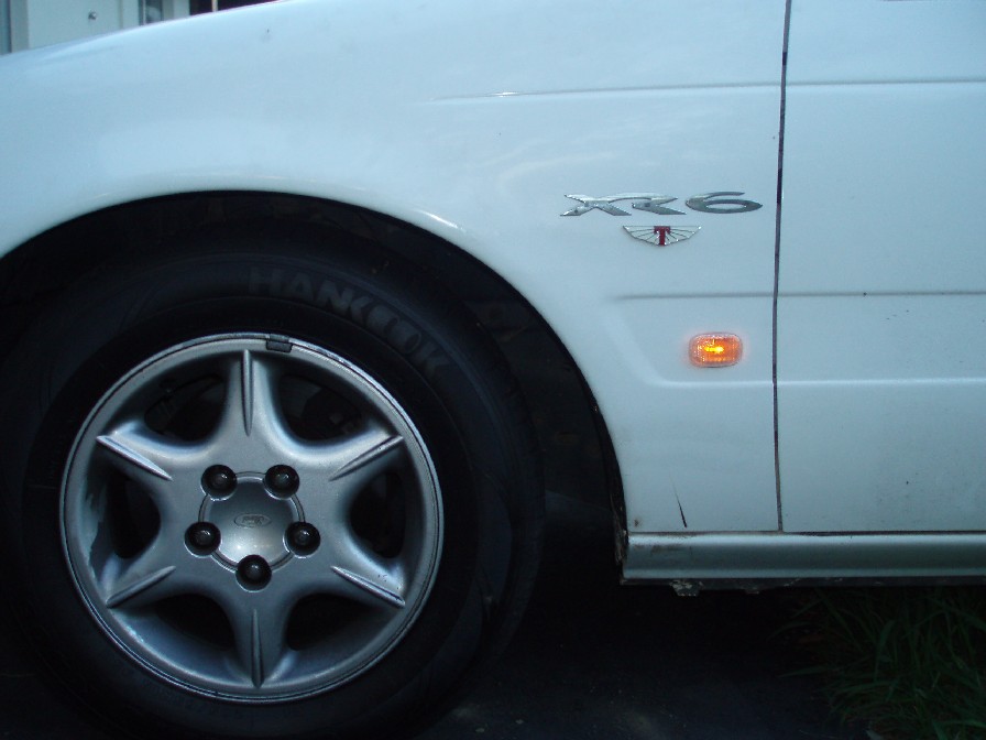 Ok, As some know I removed the side stripes on my EL XR6. I was constantly polishing them back to red (from pink) and basically i wasnt too keen on them in the first place. Long term I plan to take the red moulds out of the front and rear bars, fill them and have entirly smooth bumpers and sides.