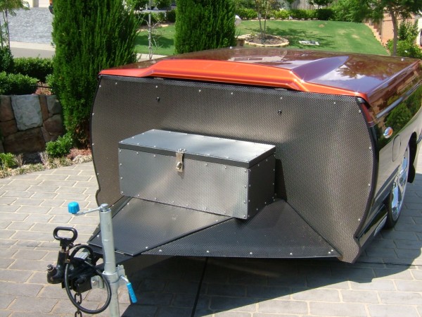 As always, there is a reason for the particular design. The tool box is actually an esky - there is a special canopy that goes over the front of the trailer with 2 chairs either side - there is also a table that fits over the trailer hitch - you sit down, under the shade of the canopy, get a beer out of the esky and watch the 27" TV which is in the back of the Super Pursuit.
